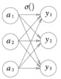 분모에서 보듯 출력층의 각 뉴련이 모든 입력 신호에서 영향을 받습니다.