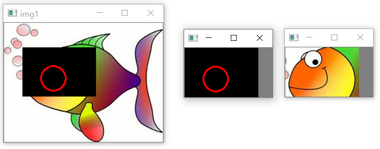 img2는 img1의 부분을 추출하였고 img2을 검은색으로 수정하고 원을 그려주니 img1도 변경되었습니다.
