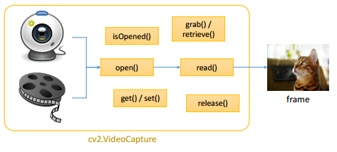 OpenCV에서는 카메라와 동영상으로부터 프레임(frame)을 받아오는 작업을 cv2.VideoCapture 클래스 하나로 처리합니다.