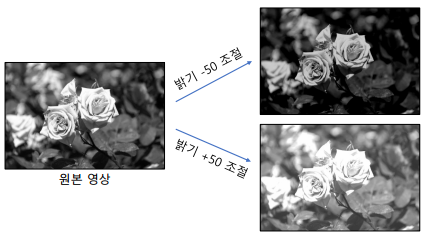 • 영상을 전체적으로 더욱 밝거나 어둡게 만드는 연산입니다.