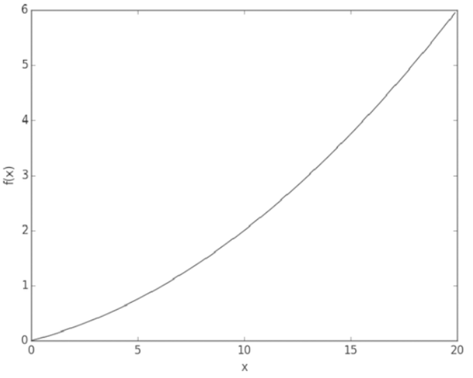 앞 절의 수치 미분을 사용하여 간단한 함수를 미분해봅시다. 우선 다음과 같은 2차 함수입니다.