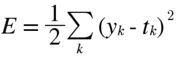 평균 제곱 오차는 각 원소의 출력(추정 값)과 정답 레이블(참 값)의 차($y_{k}$ - $t_{k}$)를 제곱한 후, 그 총합을 구합니다. ($y_{k}$ - $t_{k}$)가 작으면 작을 수록 MSE는 낮아집니다.