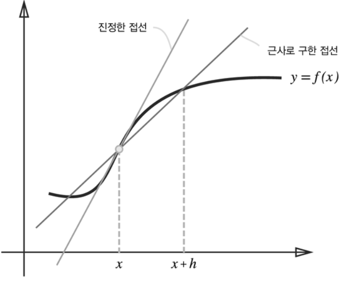 return (f(x+h) - f(x-h)) / (2 * h) # 중앙 차분 이용