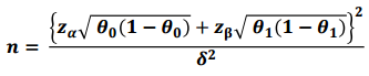 위 세 가지 조건이 설정되었으면 표본크기(n)은 다음과 같이 구할 수 있습니다.