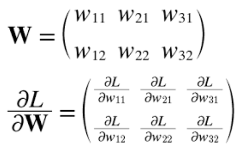 여기서 중요한 점은 W와 $\frac{\partial L}{\partial W}$의 형상은 모두 2 X 3 입니다.