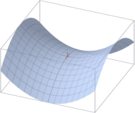 안장점(saddle point) 어느 방향에서 보면 극댓값이고 다른 방향에서 보면 극솟값이 되는 점입니다.