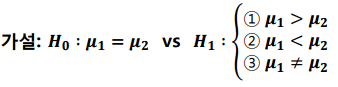 (1) 두 모집단 모두 정규 분포 형태를 갖는다.
