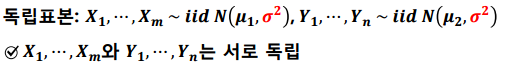 (1) 두 모집단 모두 정규 분포 형태를 갖는다.