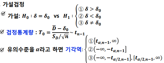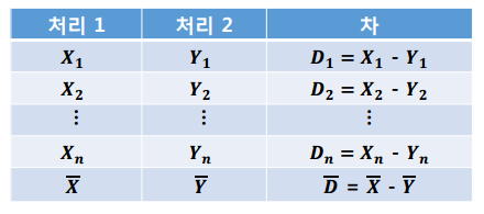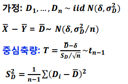 중요한 점은 두 모집단의 표본의 차의 평균을 이용한다는 점입니다.