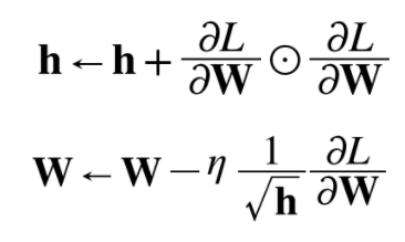 그리고 매개변수를 개신할 때 $1/\sqrt{h}$을 곱해 학습률을 조정합니다.