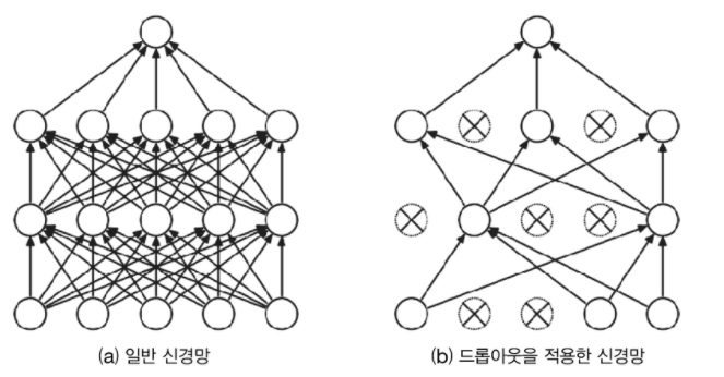드롭아웃은 뉴런을 임의로 삭제하면서 학습하는 방법입니다.