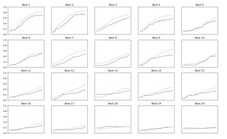 위 그림은 검증 데이터의 학습 추이를 정확도가 높은 순서로 나열했습니다.