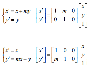 이동 변환에서는 단위 행렬을 어파인 행렬로 생성했지만, 전단 변환은 m 상수도 필요합니다.