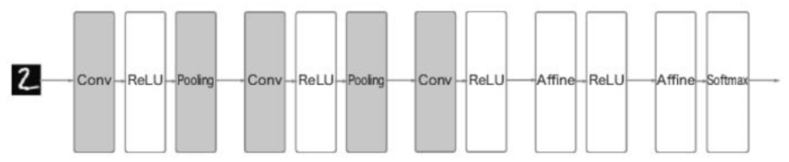 합성곱 계층과 풀링 계층의 상세 내용은 나중에 공부하기로 하고, 여기서는 이 계층들을 어떻게 조합하여 CNN을 만드는지 먼저 보겠습니다.