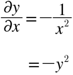 '/'노드, 즉 y = $\frac{1}{x}$ 을 미분하면 다음 식이 됩니다.