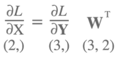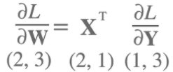 계산 그래프에서 각 변수의 형상에 주의해야 합니다. 특히 X 와 $\frac{\partial L}{\partial X}$은 같은 형상이고, W와 $\frac{\partial L}{\partial W}$도 같은 형상이라는 것을 기억해야 합니다.