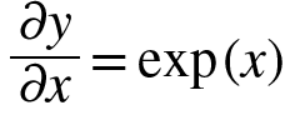 'exp'노드는 y = exp(x) 연산을 수행하며, 그 미분은 다음과 같습니다.