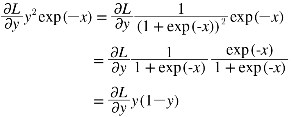 또한, $\frac{\partial L}{\partial y}y^2exp(-x)$는 다음처럼 정리해서 쓸 수 있습니다.
