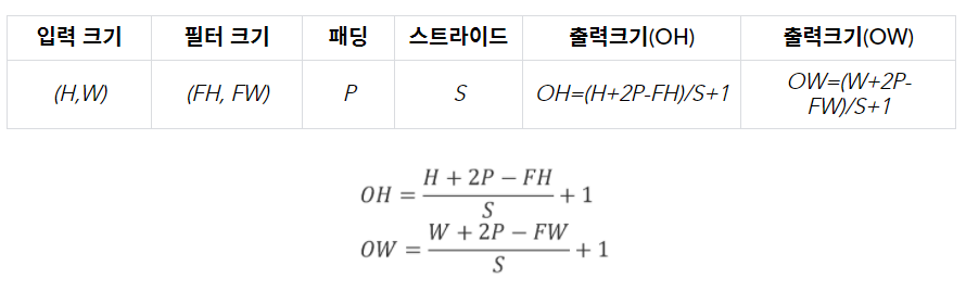 이 식에 단순히 값을 대입하기만 하면 출력 크기를 구할 수 있습니다.