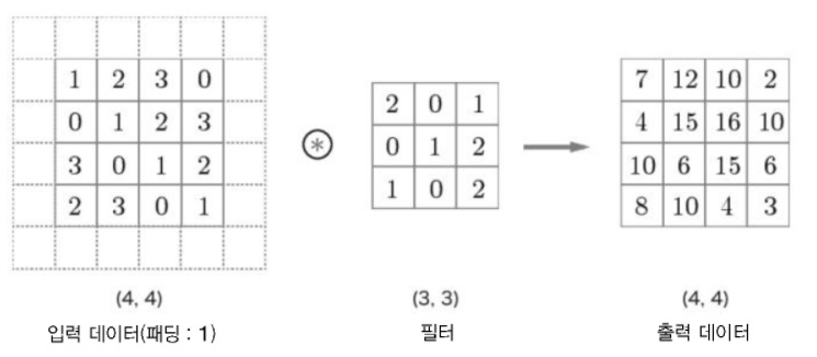 합성곱 연산을 수행하기 전에 입력 데이터 주변을 특정 값(예컨대 0)으로 채우기도 합니다.