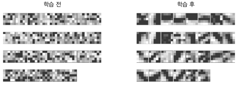 한편, 학습을 마친 필터는 규칙성이 있는 이미지화 되었습니다.