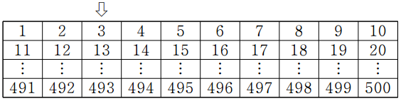 모집단 크기 = 500, 표본크기 50 일때, k = 500/50 = 10로 결정한다. 3을 선택했으면 3 + k, 3 + 2k 번째 난수를 선택한다. (3, 13, 23, 33)