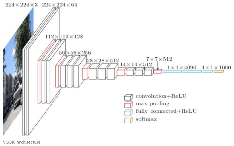 다만, 아래 그림과 같이 비중 있는 층(합성곱 계층, 완전연결 계층)을 모두 16층(혹은 19층)으로 심화한 게 특징입니다. (층의 깊이에 따라서 'VGG 16'과 'VGG19'로 구분합니다.)