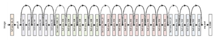 그림과 같이 ResNet은 합성곱 계층을 2개 층마다 건너뛰면서 층을 깊게 합니다.