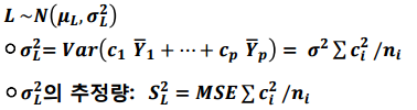 L은 정규분포를 따른다고 가정하면 분산과 분산의 추정량은 다음과 같습니다.