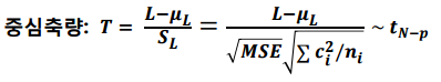선형대비에서 귀무가설을 다음과 같이 설정합니다.