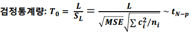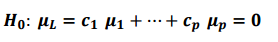 선형대비에서 귀무가설을 다음과 같이 설정합니다.