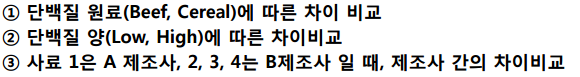 (1) 단백질 원료(beef, cereal)에 따른 차이 비교