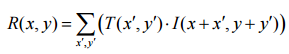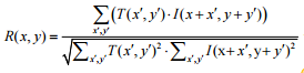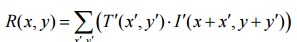 템플릿 영상의 픽셀값과 부분 영상의 픽셀 값을 같은 위치의 픽셀값을 곱하고 다 더하는 방법입니다.