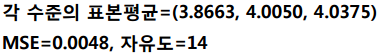 블록효과의 F값이 1보다 클수록 블록화의 효과가 좋습니다.