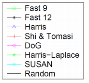 FAST 방법의 반복 검출률이 대체로 높습니다. 하지만 FAST 방법은 노이즈에 민감합니다.