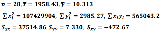 우선 검정통계량과 상관계수를 구하기 위해 필요한 통계값을 구하겠습니다.