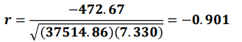 또한 표준상관계수가 -0.9이므로 -1에 가깝습니다.