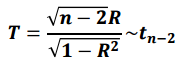 두 변수가 모두 정규분포를 따르면, $H_0$ : $rho$ = 0 에 대한 검정통계량은 다음과 같습니다.