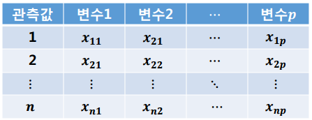 다변량 자료는 어떤 대상에 대해 여러 가지 변수들을 관측(측정)한 자료들의 집함을 의미합니다