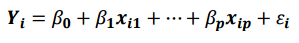선형회귀모형에서 관계식은 다음과 같이 가정합니다.