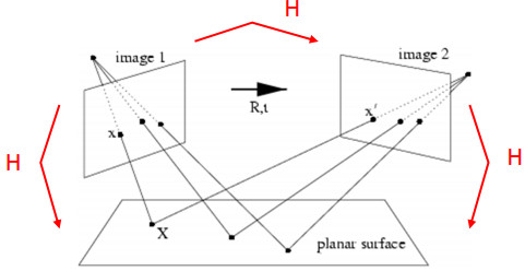 또한 I1과 I2도 호모그래피 H12 관계가 생깁니다.