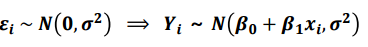 여기서, $\beta_0 + \beta_1x_i$는 평균을 의미합니다.