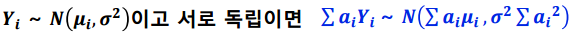 독립이므로 선형결합도 독립이고 분산은 각각의 분산의 합으로 표현할 수 있습니다.