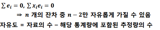 자유도는 오차의 두 제약조건 때문에 2개를 사용못합니다.