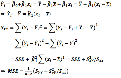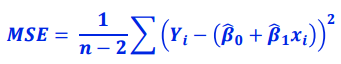 따라서 회귀모형에서 MSE(분산의 추정값)는 다음과 같이 구할 수 있습니다.