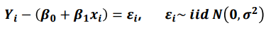 단순회귀모형에서 모형식은 다음과 같이 가정할 수 있습니다.