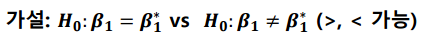 귀무가설은 회귀계수 $\beta_1$ = 0 인지 아닌지로 확인할 수 있습니다.