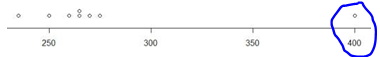 표본평균이 대표적인 중심위치이지만 사용해야 하는 데 주의할 점이 있습니다. 자료 중에는 일부 관측값이 대부분의 나머지 관측값들에서 멀리 떨어져 있는 경우가 있습니다. 이렇게 떨어져 있는 관측값을 통계학에서는 이상점(outlier)이라고 합니다. 이상점이 자료에 포함되어 있는 경우 표본평균의 값에 차이가 크게나는 경향이 있습니다.