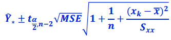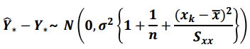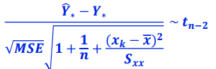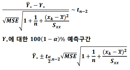 중심축량의 분모와 t분포의 임계값을 이용하면 $Y_*$에 대한 100(1-a)% 예측구간을 구할 수 있습니다.