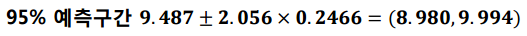 이를 예측구간 구하는 식에 대입하면 됩니다.